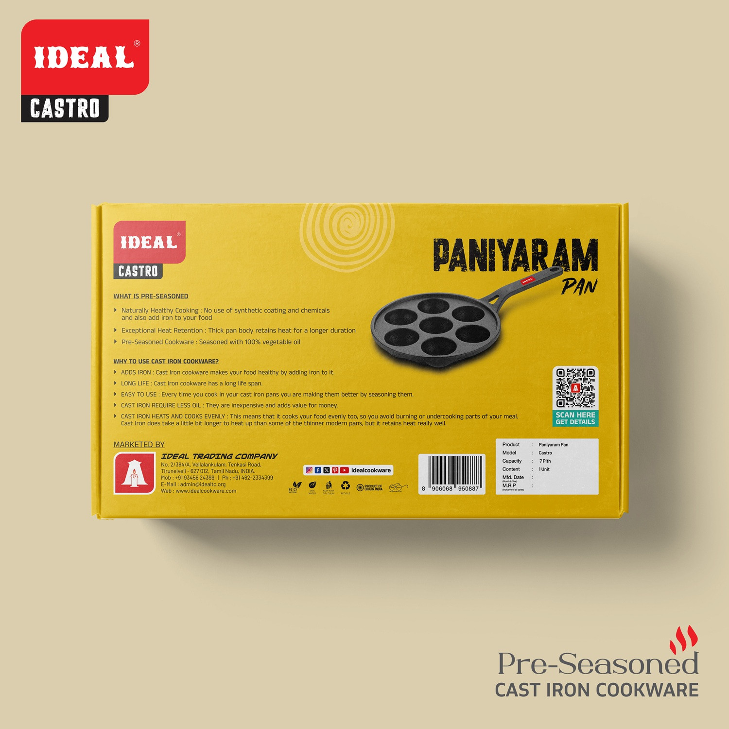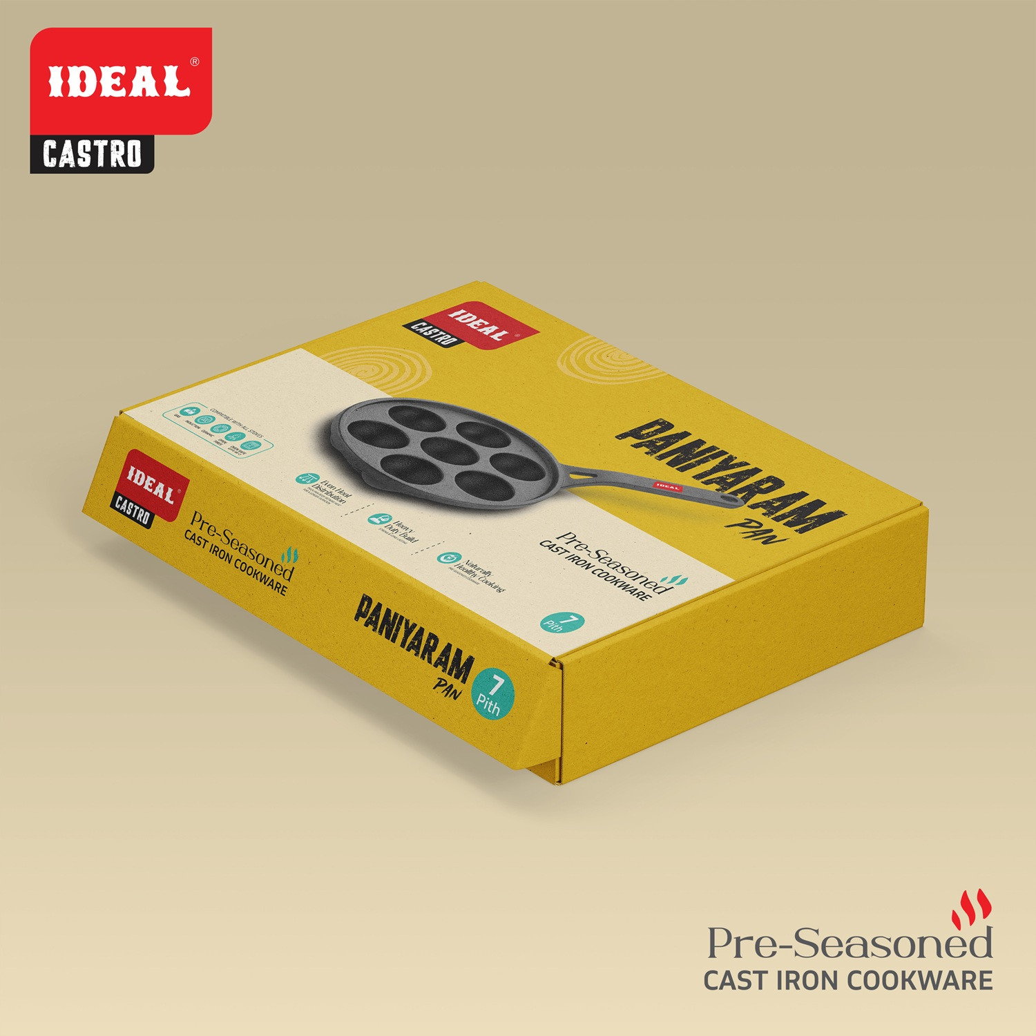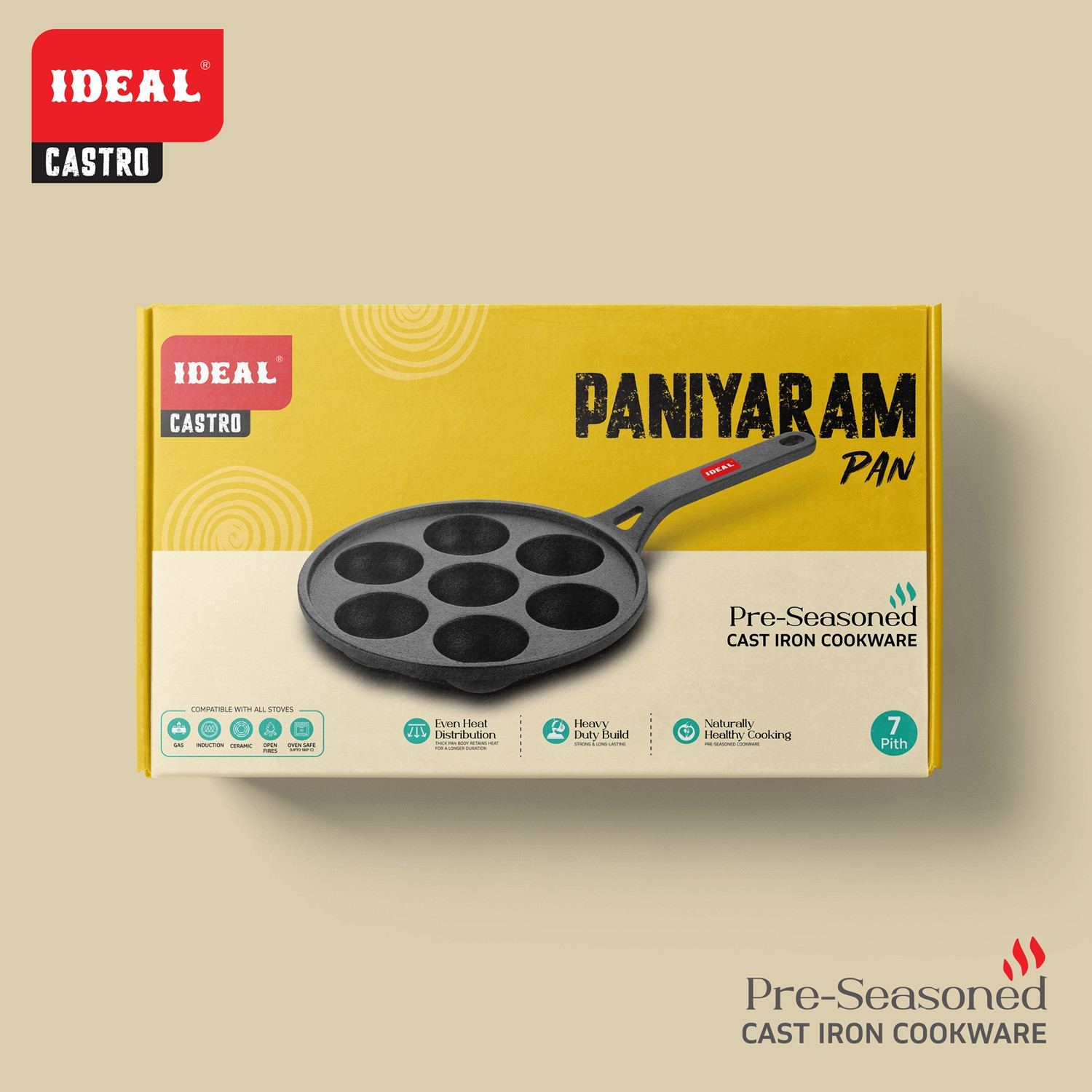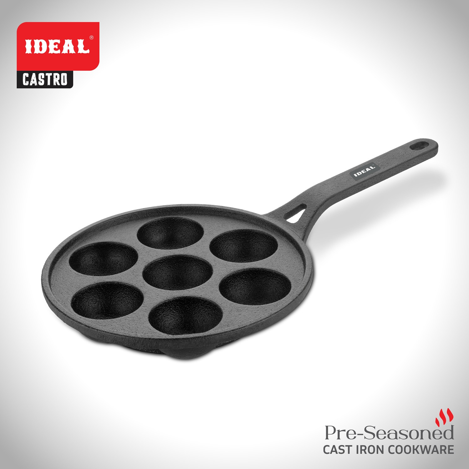 Relish traditional South Indian snacks with the Castro Cast Iron Paniyaram Pan. Its multiple cavities and superior heat retention ensure evenly cooked, crispy, and fluffy paniyarams. Pre-seasoned for natural non-stick cooking, it brings authentic flavor to your kitchen.